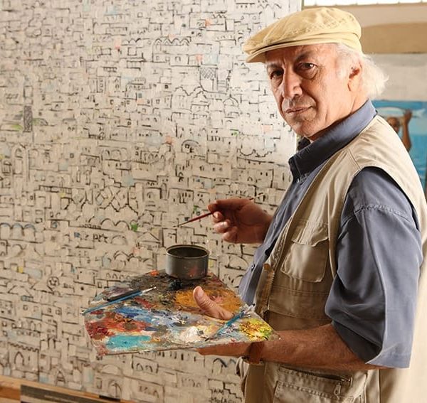 Jamil Molaeb was born in Baissour and studied in the US. He has a Master’s from Pratt institute, New York and also earned a PhD in Art Education from the University of Ohio. Molaeb’s paintings and woodcuts largely explore his native Lebanon, including Beirut’s rich, eclectic heritage.