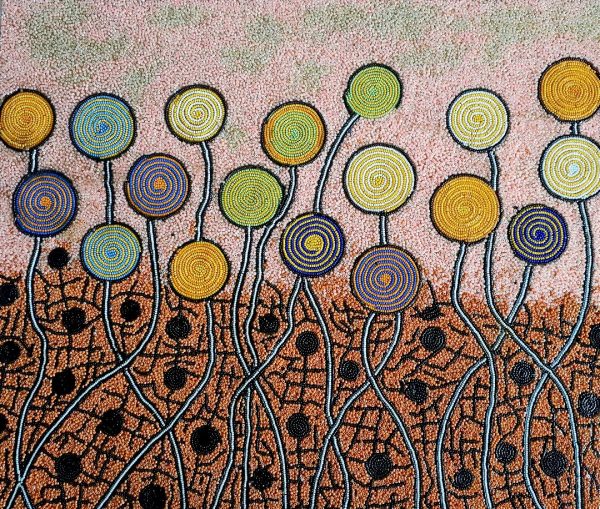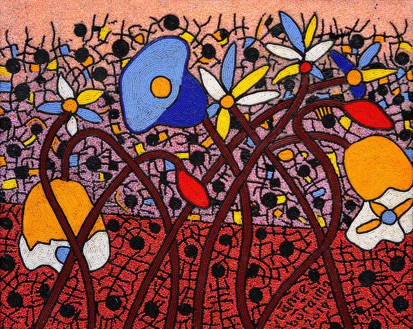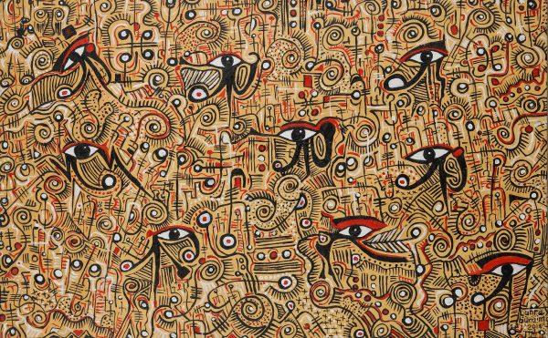 Born 1976 in Osogbo, Osun State, Nigeria, Lanre trained under the hands of his parents, Chief Jimoh Buraimoh and Mrs. Alake Buraimoh and graduated with a degree in Business Administration from AMBROS Ali University and Osun State Polytechnic, Iree in 2001 and 2005 respectively. Inspired by the ancient city of Osogbo, Lanre’s bead painting technique projects Yoruba symbols and the theme of his works majorly reflect Yoruba traditional belief, love, entertainment, animals and unity.