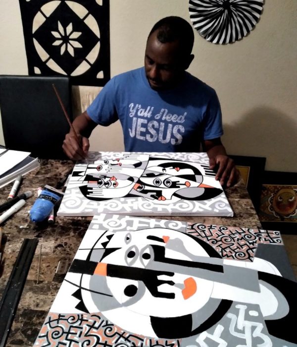 He has exhibited widely in Nigeria, Denmark, London, Canada and the US. His work has won international awards from the American Art Award, Sky Forest California, Citywide African American Exhibit, Houston Texas, Coastal League Museum California, American Art Award California, Light Space and Time Gallery in Florida and People Upstream Gallery Omaha, Nebraska. In 2019 Lanre Buraimoh was selected to be one of the Houston Artadia Fellows. In addition to creating art, he has conducted art workshops for kids and adults both at home and abroad. Lanre lives and works in Houston, Texas.