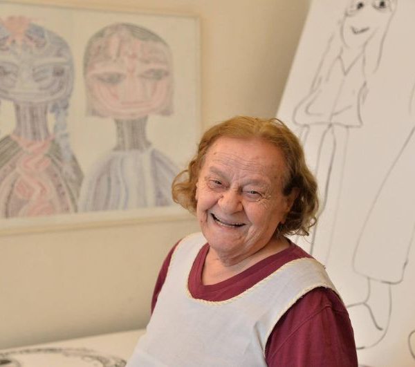 From 2001 onwards, her work featured in several solo and group exhibitions at Galerie Janine Rubeiz, including shows held together with her son Mazen Kerbaj and the artist Huguette Caland. Her art was showcased at Art Dubai Modern (2014) and regularly at Abu Dhabi art fairs. Other exhibitions featuring her work have included: ‘Convergence – New Art from Lebanon’ (2010) at the Katzen Art Center of the American University in Washington DC and ‘Pinceaux pour Plumes’ (2006) at the Sursock Museum. In addition, she took part in ‘Home Beirut: Sounding the Neighbors’ (2017) at the MAXXI Museum in Rome and ‘Laure et Mazen: Correspondance(s)’ at the Sursock Museum in 2019. Ghorayeb’s work can be found in a number of prominent collections, including the British Museum, the Sursock Museum and ‘Fondation Saradar’.