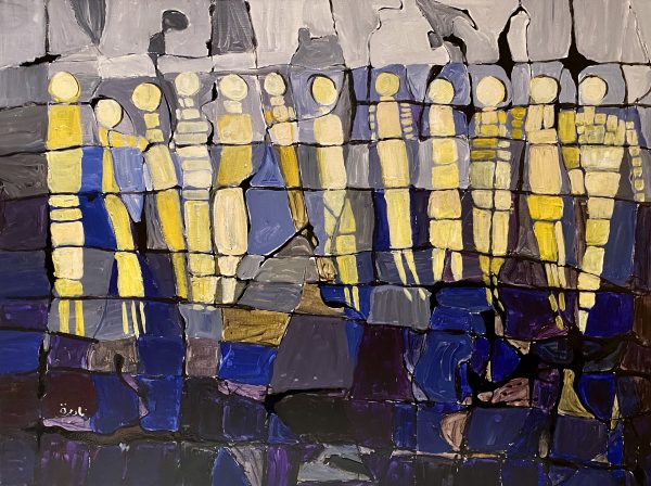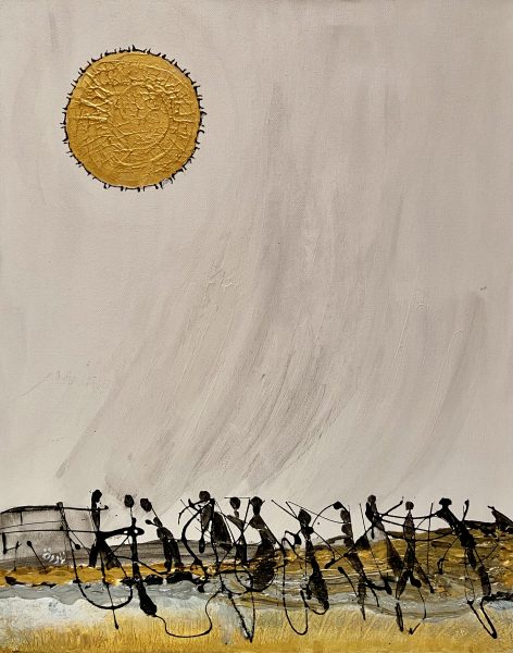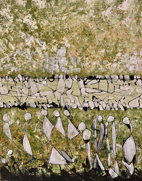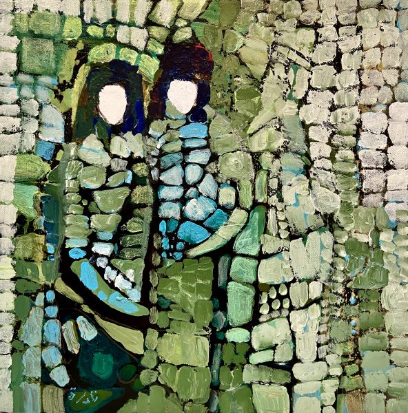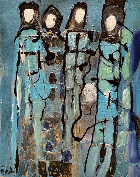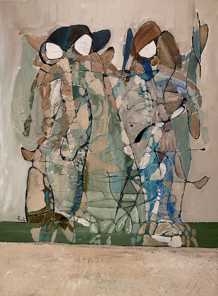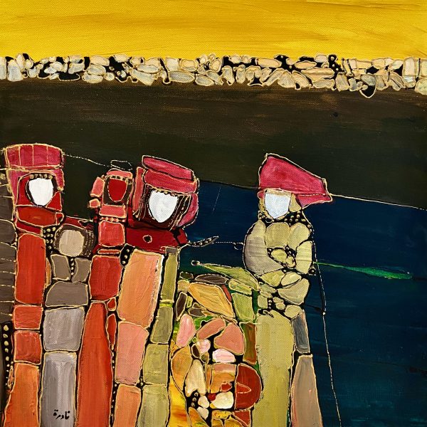 Nadira Azzouz (1927 – 2020) started painting from the age of six, later studying art at the School of Domestic Fine Arts in Baghdad (1944-49). This was followed with further studies at the Central School of Art in London (1957-60) where she achieved a BA in Painting. Like most Iraqi artists of her generation who had similarly studied abroad, her work is informed by the canon of 20th century international art yet at the same time displays its own distinctive, Iraqi, identity as found in Sumerian and Assyrian sculptures, medieval Arab manuscript illumination and the folk motifs of handicrafts and rugs, as well as local popular themes.