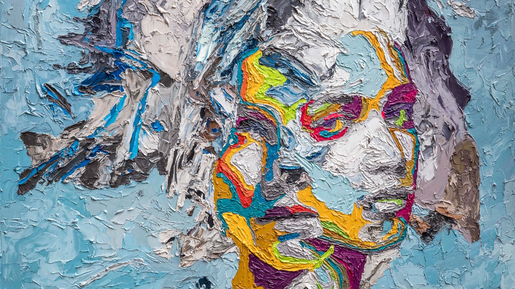 Importantly, the camera lens is a fundamental tool employed by Dirar in his works. As such, Hossam Dirar’s approach to image making is layered and nonlinear. As well as conceiving the image’s composition, he also deconstructs the area between the digital environment and layers of representation. While the camera provides a sketch onto which further details can be rendered, the lens does not strictly determine the order of representation, nor the manner of the composition. Instead it provides a background upon which ‘painterly interventions’ can be applied almost ‘independent of the surface’. Consequently there is a cinematic quality associated with his paintings where iconic images expand into almost theatrical montages. These tableaus are coupled with time sequences that trace quixotic historical scenes, with a sense of drama derived from epic paintings of the 19th century, yet aided by the realism and truthful eye of photography. Where in some works we can cite 19th century Orientalist paintings as sources of inspiration, in other works Dirar quotes characteristic features of Pop Art such as the brightness of colour he uses and the icon-like status of his sitters.