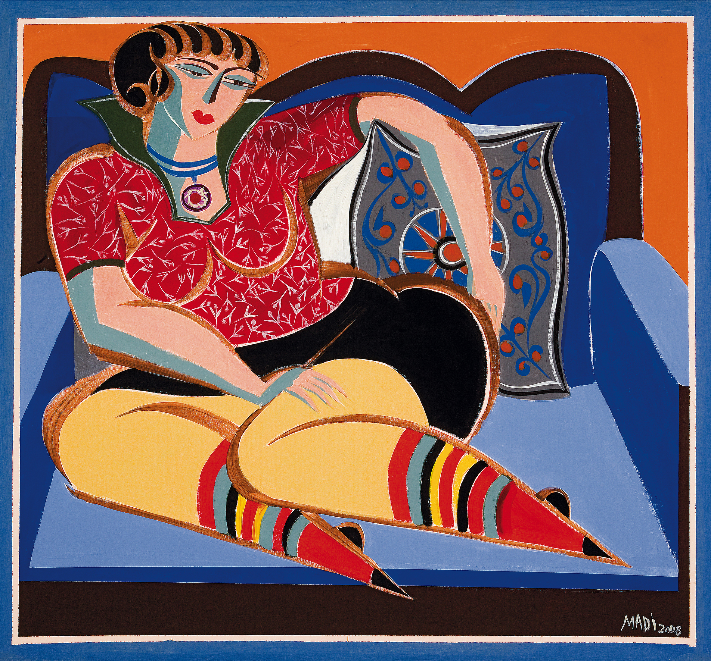 Madi’s joyful experiments in colour and form have resulted in a unique body of work that relates to modern artists like Matisse and Picasso, as well as to the principles of divine harmony that inform the abstract designs of Islamic art. His intensely personal fusion of European and Islamic influences presents itself with a force that is both arresting and subtle. Combining meticulousness and sensuality, Madi’s lines sing with a spontaneous freedom that belies the careful, even exacting, calculations that the artist invests in each work.