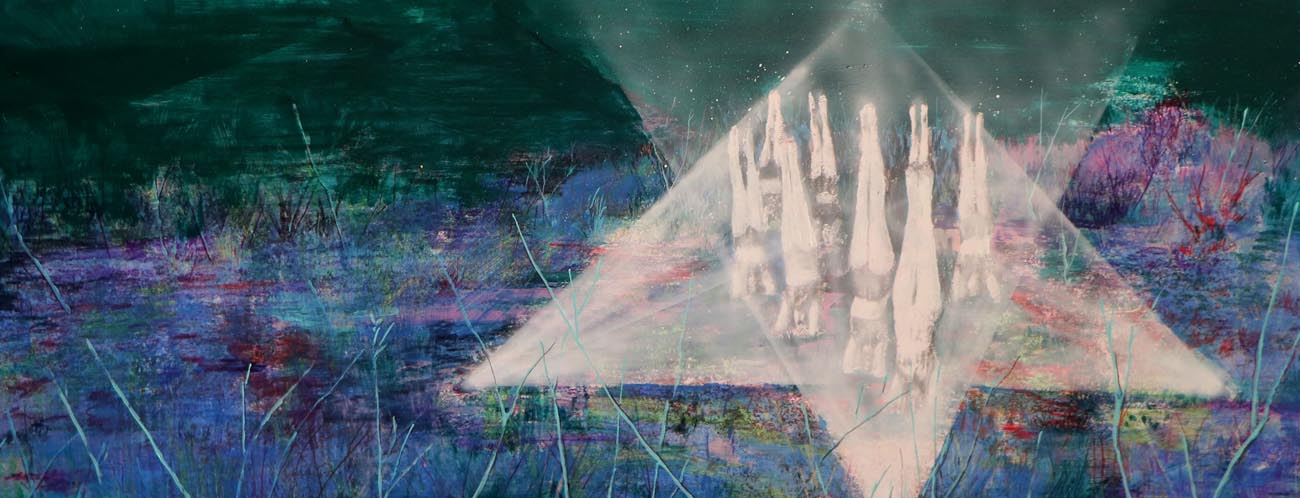 In Davoud’s paintings, time seems to stand still as she draws together reality and myth, nature and legend and as she transports the viewer to a surreal land of wonder and unity.